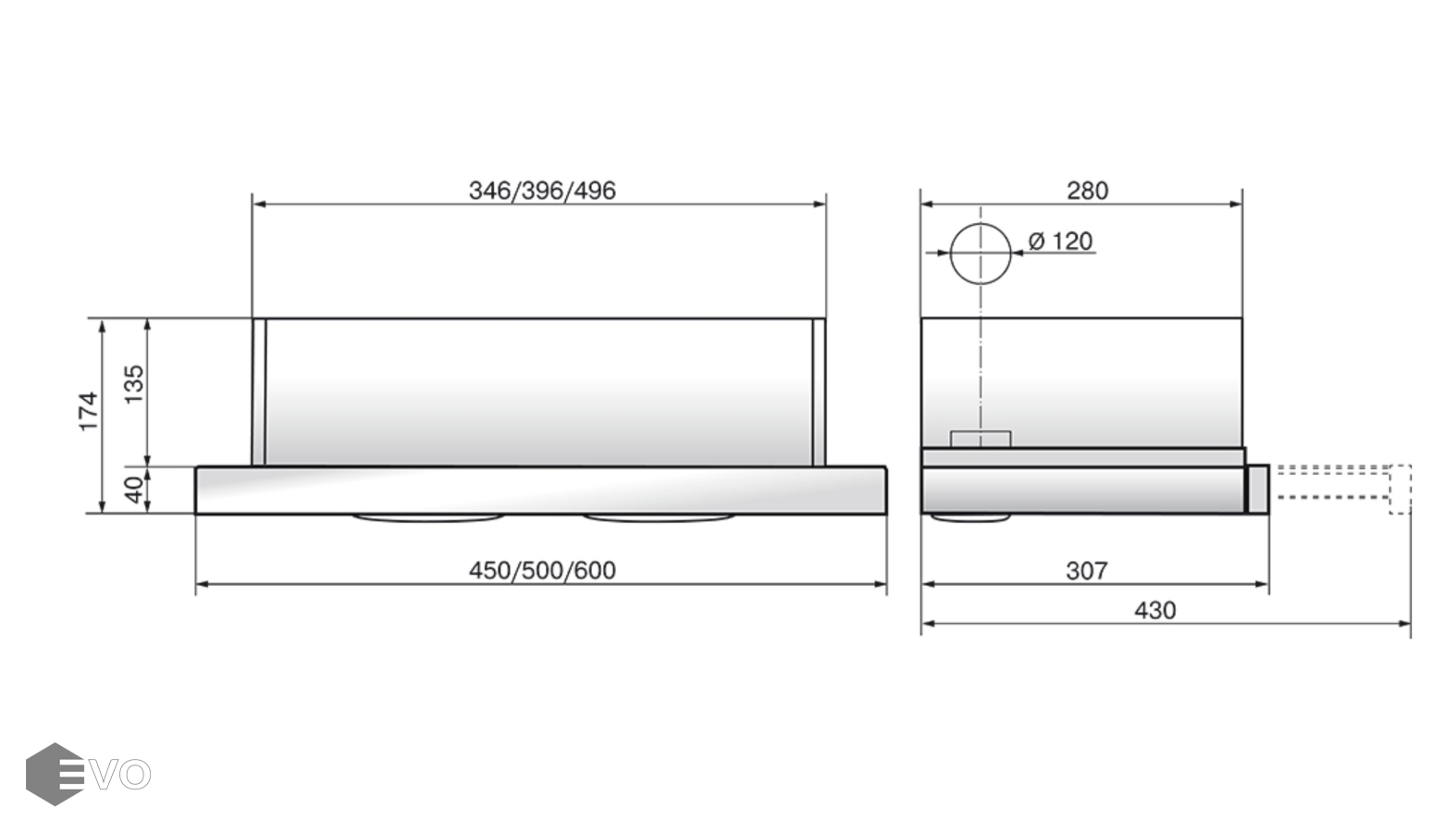Особенности вытяжки: Выдвижная панель Жировой фильтр