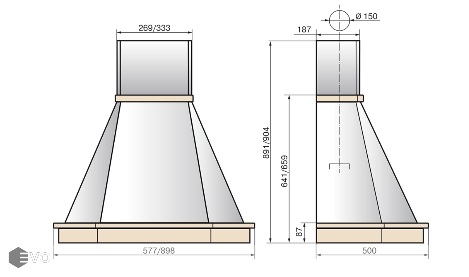 Вытяжка Elikor Камин Грань 60П-650-П3Л бежевый / дуб бежевый