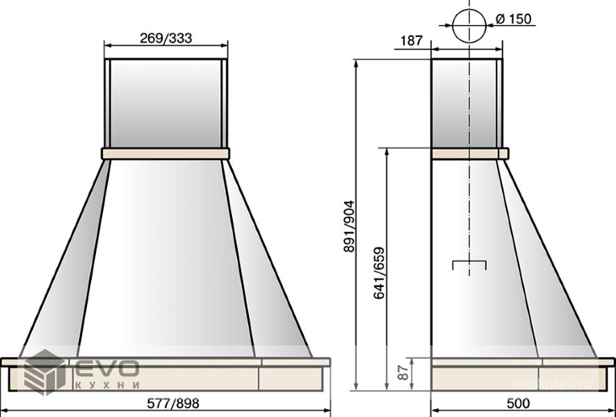 Вытяжка Elikor Камин Грань 90П-650-П3Л бежевый / дуб неокрашенный