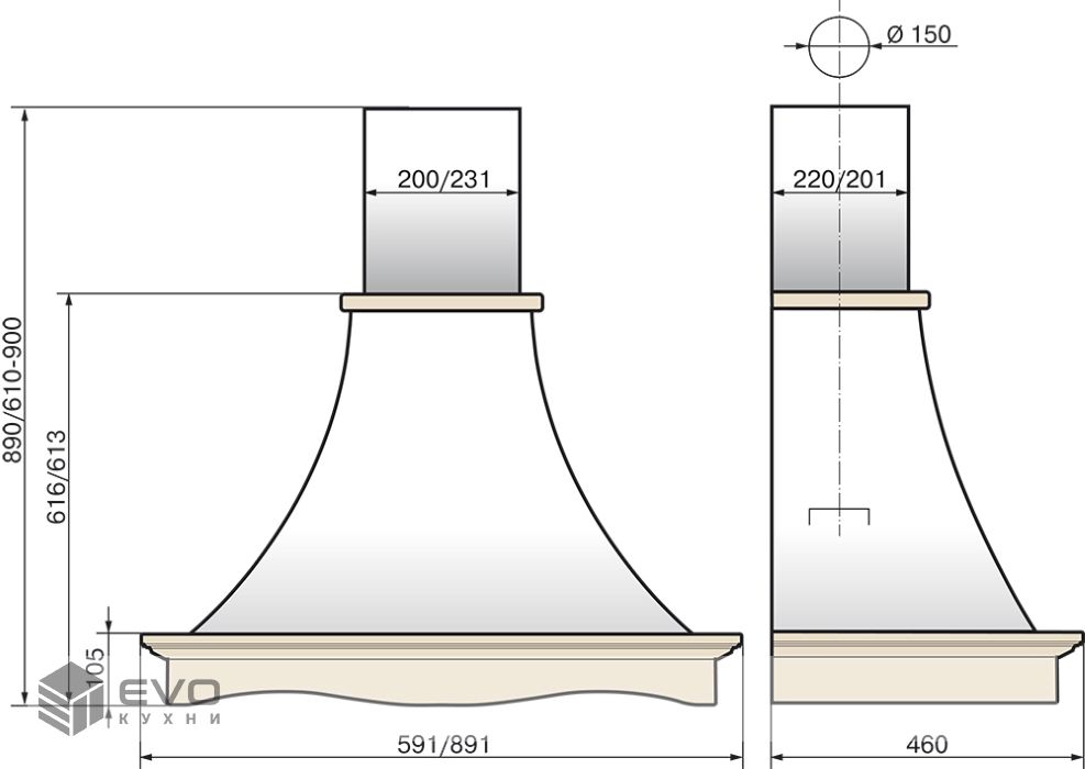 Вытяжка Elikor Рококо 90П-700-П3Д белый муар / дуб неокрашенный