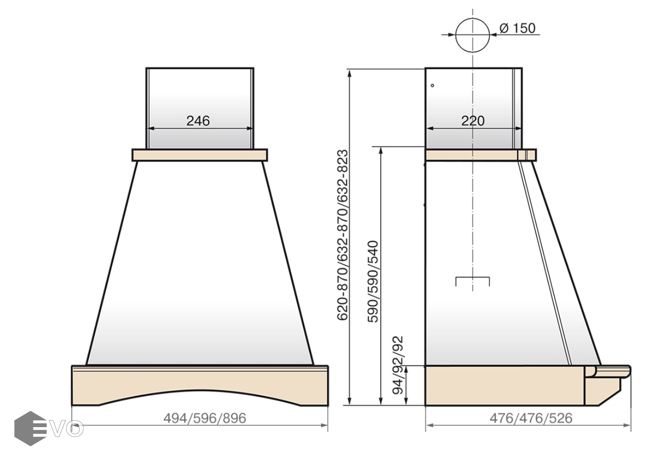 Вытяжка Elikor Ротонда 60П-650-П3Л крем / дуб неокрашенный