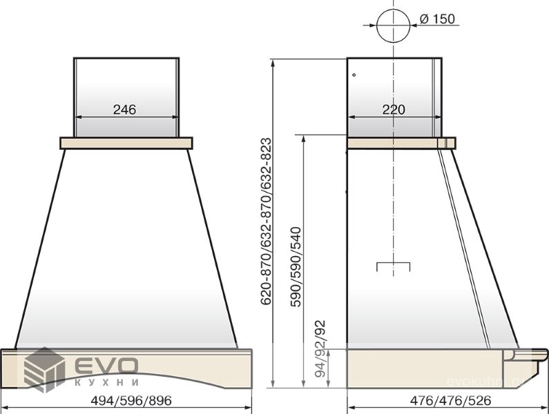 Вытяжка Elikor Ротонда 90П-650-П3Д бежевый / дуб рустика