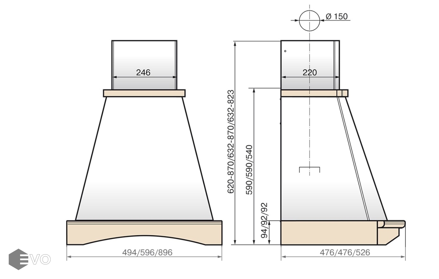 Вытяжка Elikor Ротонда 90П-650-П3Д бежевый / дуб крем патина золото