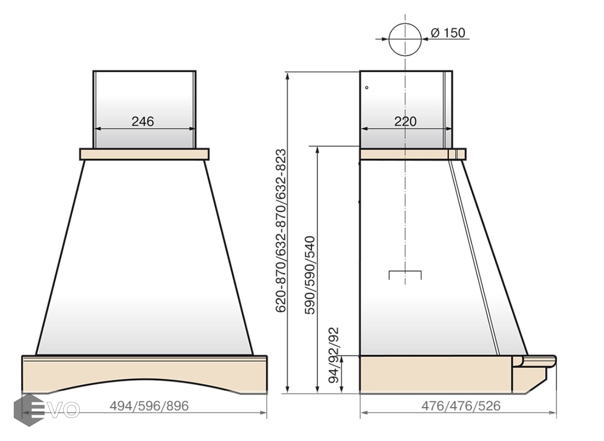 Вытяжка Elikor Ротонда 90П-650-П3Д бежевый / дуб венге