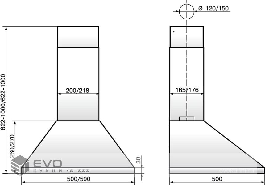 Тип вытяжки : | Традиционная (пристенная) |