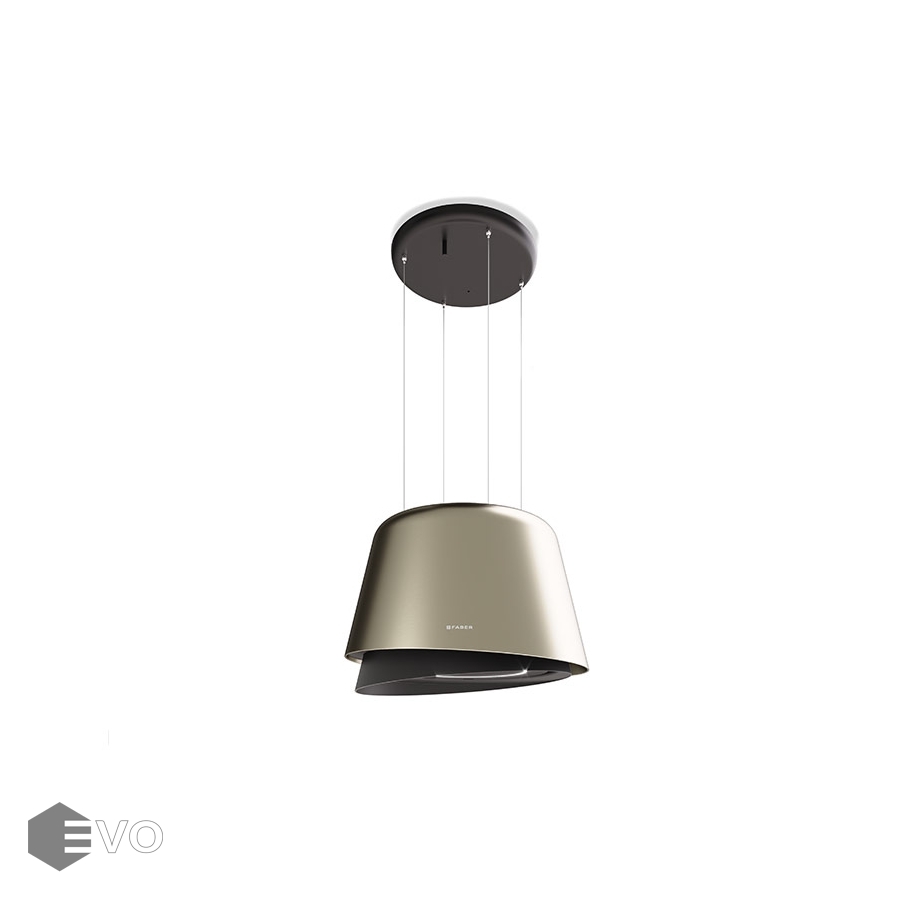 Островная вытяжка FABER BELLE PLUS GOLD/W.DG MATT – подвесная вытяжка потолочного монтажа работает в режиме отвода по технологии AIRLANE и рециркуляции. Помимо основного вентилятора в корпусе вытяжки, в потолок встраивается дополнительный. К нему подсоединяется воздуховод, который скрывается под подвесным потолком и выводит загрязнения в вентиляцию.