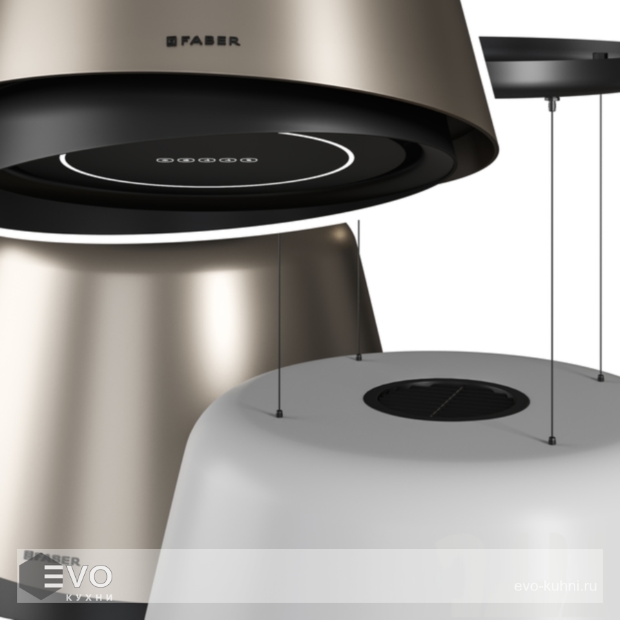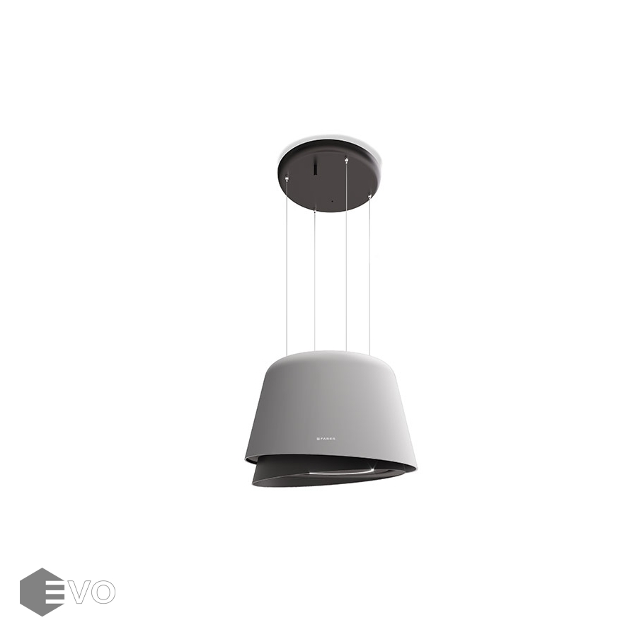 Островная вытяжка FABER BELLE PLUS GR MATT/W.DG MATT – подвесная вытяжка потолочного монтажа работает в режиме отвода по технологии AIRLANE и рециркуляции. Помимо основного вентилятора в корпусе вытяжки, в потолок встраивается дополнительный. К нему подсоединяется воздуховод, который скрывается под подвесным потолком и выводит загрязнения в вентиляцию.