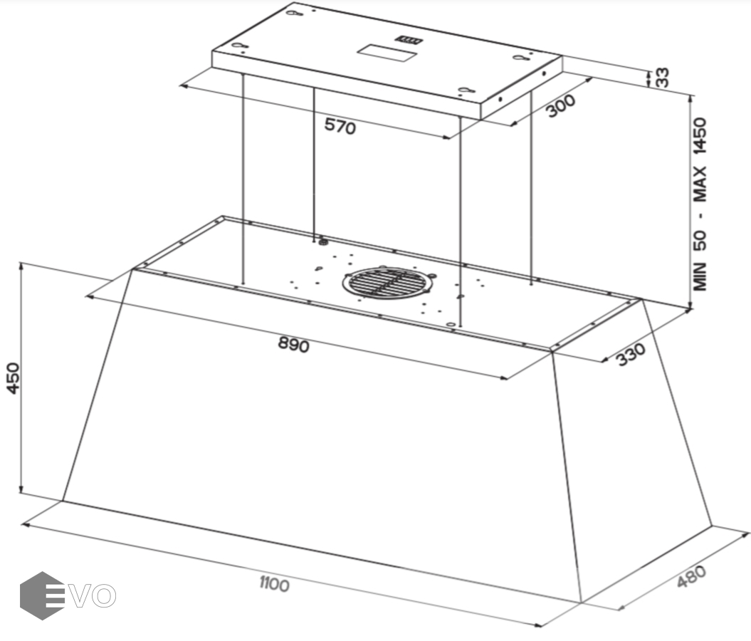 | Тип вытяжки : | Островная Подвесная (потолочная) |