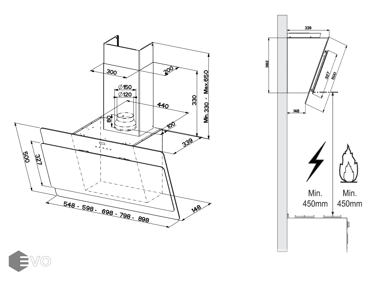 - Высота установки над электрическими варочными поверхностями, мм: 450