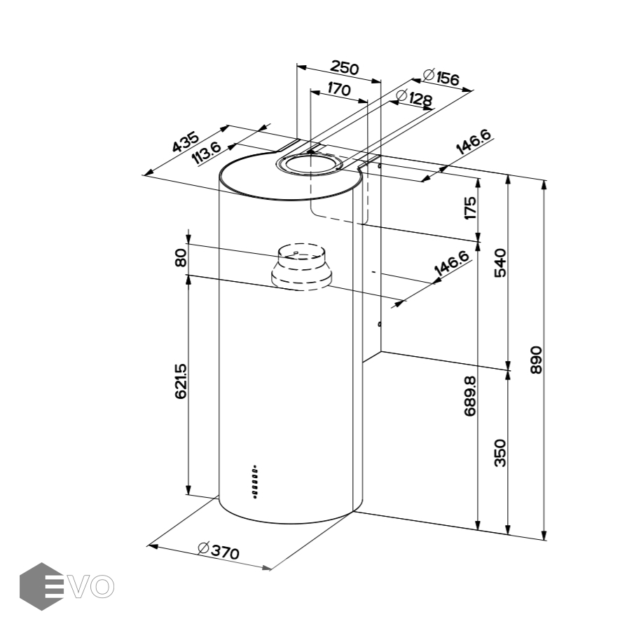 - Тип вытяжки: цилиндрическая пристенная