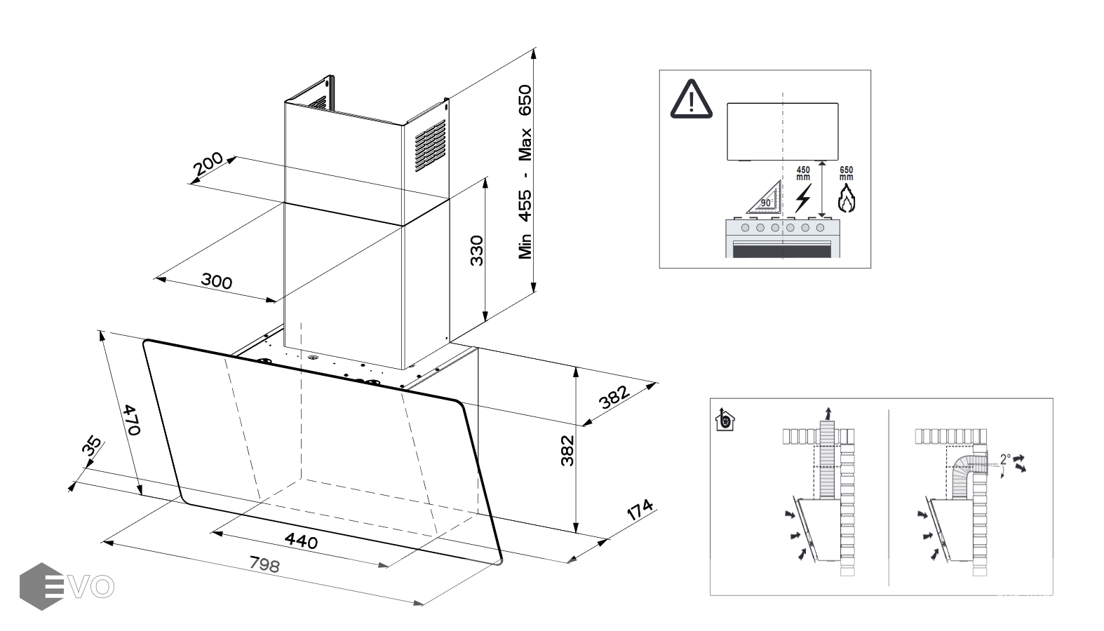• Высота установки над электрическими варочными поверхностями, мм: 450
