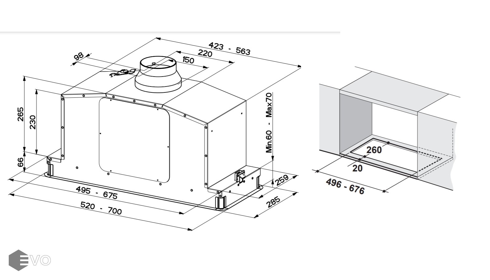 Полновстраиваемая вытяжка FABER IN-LIGHT INOX A52 EVO+  – встраиваемая в подвесной шкаф модель шириной 52 см. Таймер Delay позволяет задерживать выключение устройства для полного устранения запахов и очистки воздуха. Функция перманентного проветривания обеспечивает возможность круглосуточной работы вытяжки с низким энергопотреблением и уровнем шума. Мотор EVO с оптимизированной геометрией крыльчатки гарантирует лучшие результаты в снижении энергопотребления и уровня шума.