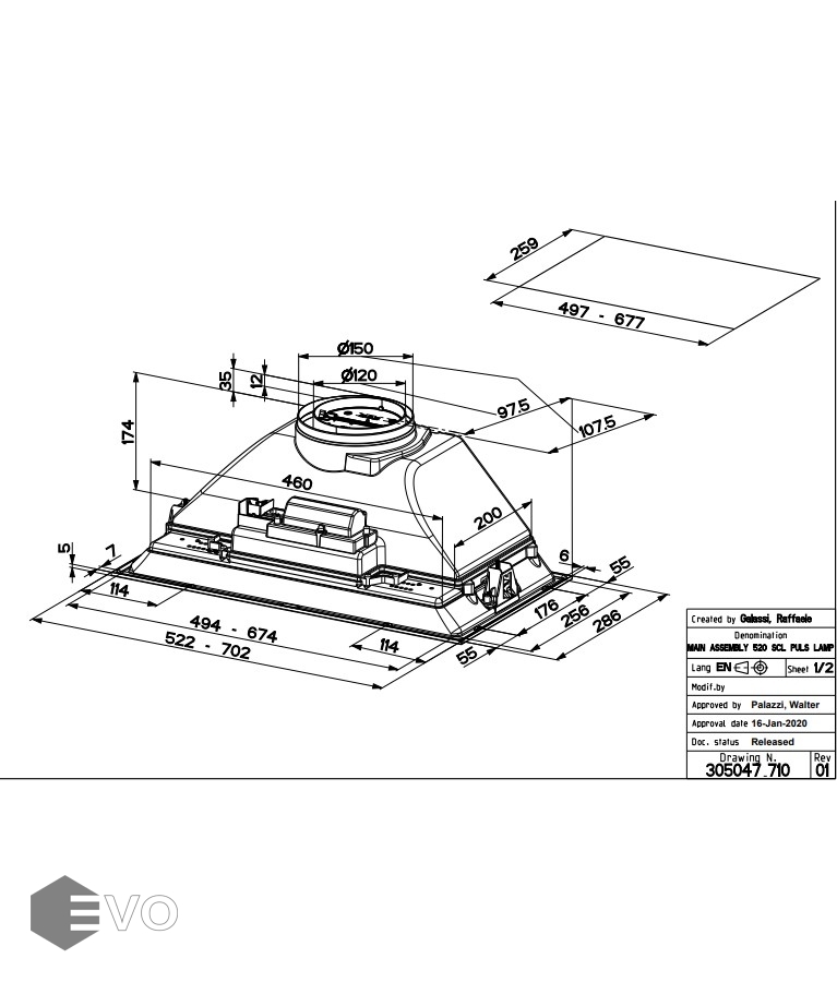 Тип вытяжки : | Встраиваемая (в шкаф) |
