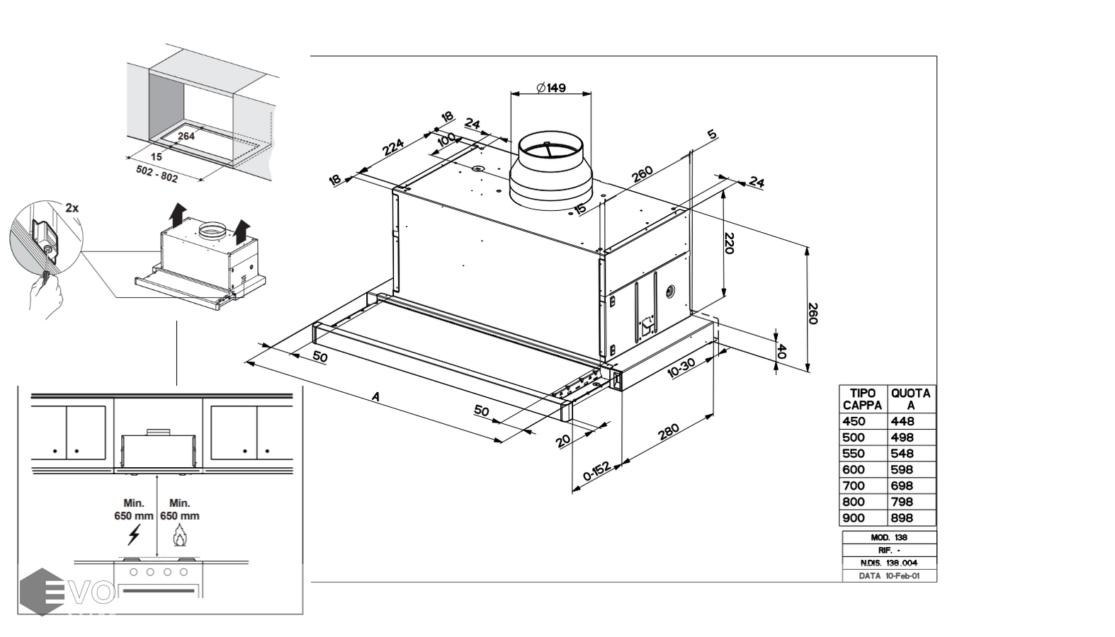 - Высота установки над электрическими варочными поверхностями, мм: 650