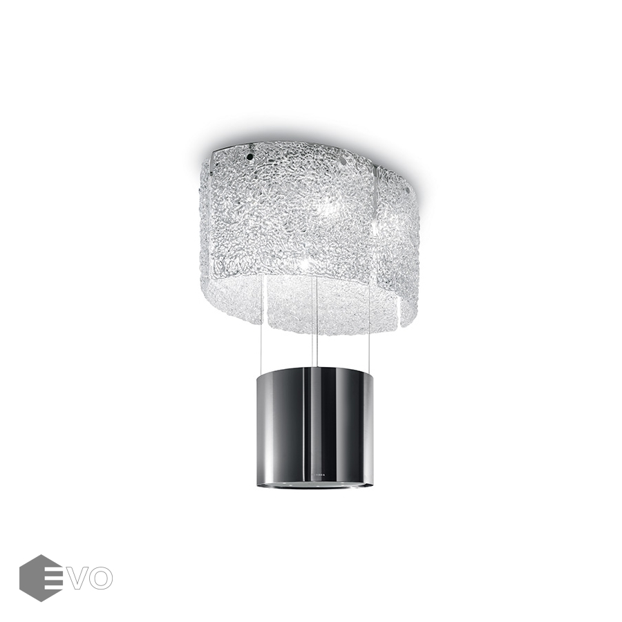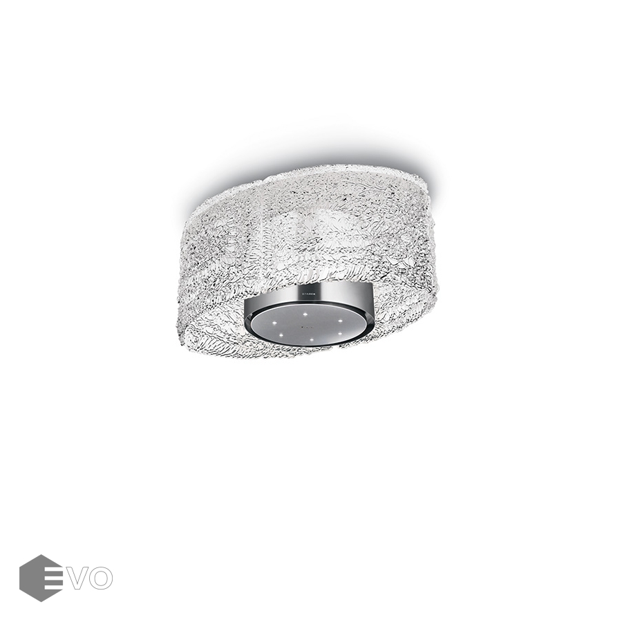 Островная вытяжка FABER NEST EVO PLUS – подвесная вытяжка потолочного монтажа сделана полностью из нержавеющей стали с оригинальным дизайном, повторяющий форму птичьего гнезда за счет элегантных стеклянных панелей. Вытяжка имеет уникальный механизм по технологии UP&DOWN, поднимающий и опускающий вытяжку на необходимую высоту, для эффективного очищения воздуха и освещения. Управляемая с пульта модель плавно плавно опускается ближе к варочной поверхности увеличивая эффективность работы.