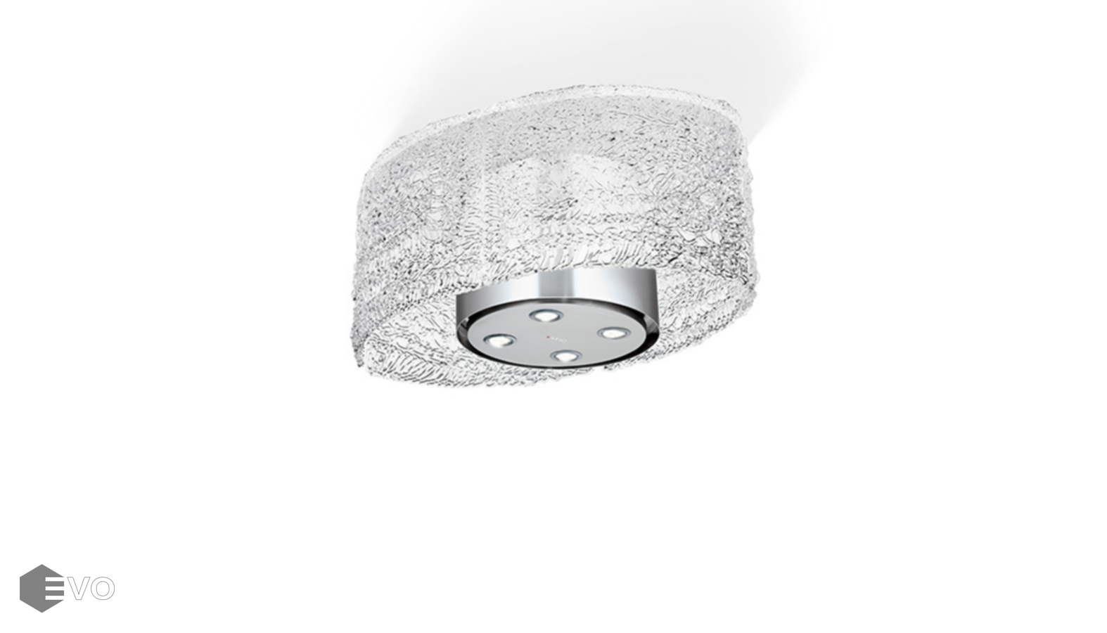 Островная вытяжка FABER NEST (SET) – подвесная вытяжка потолочного монтажа сделана полностью из нержавеющей стали с оригинальным дизайном, повторяющий форму птичьего гнезда за счет элегантных стеклянных панелей. Вытяжка имеет уникальный механизм по технологии UP&DOWN, поднимающий и опускающий вытяжку на необходимую высоту, для эффективного очищения воздуха и освещения. Управляемая с пульта модель плавно плавно опускается ближе к варочной поверхности увеличивая эффективность работы.