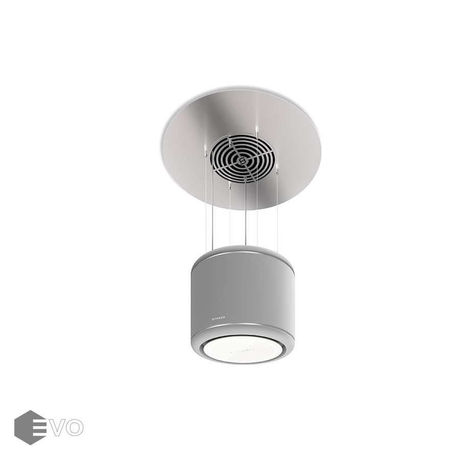 Островная вытяжка FABERODETTE GREY MATT – подвесная вытяжка потолочного монтажа работает в режиме отвода по технологии AIRLANE и рециркуляции. Помимо основного вентилятора в корпусе вытяжки, в потолок встраивается дополнительный. К нему подсоединяется воздуховод, который скрывается под подвесным потолком и выводит загрязнения в вентиляцию.