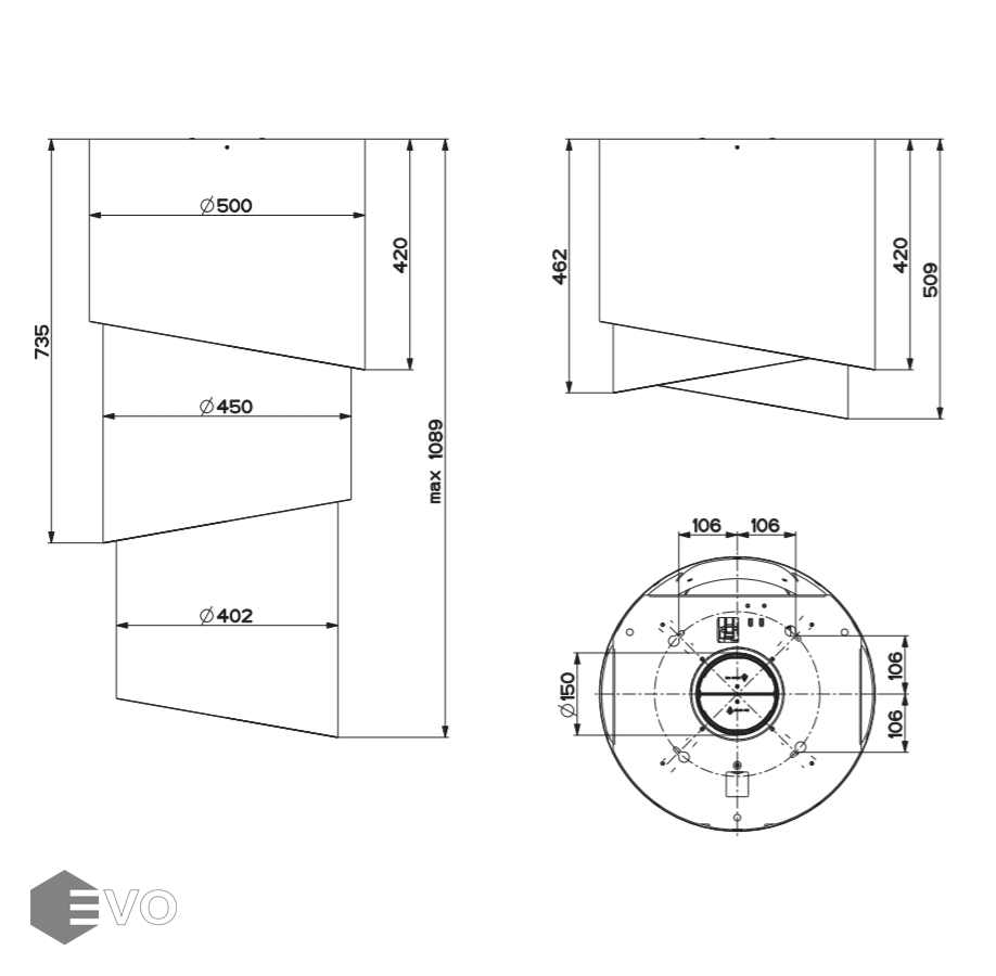 - Высота установки над электрическими варочными поверхностями, мм: 650