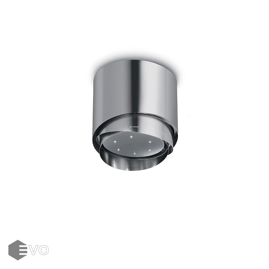 Островная вытяжка FABER PAREO EVO PLUS – подвесная вытяжка потолочного монтажа регулируется по высоте от 42 см до 109 см для удобства монтажа на кухне любых размеров. Во время работы PAREO приближается к варочной поверхности по спирали для оптимального всасывания воздуха. После использования уникальная комбинация геометрических линий и форм поднимается вверх, собираясь вокруг мотора, чтобы освободить пространство вокруг варочной поверхности.