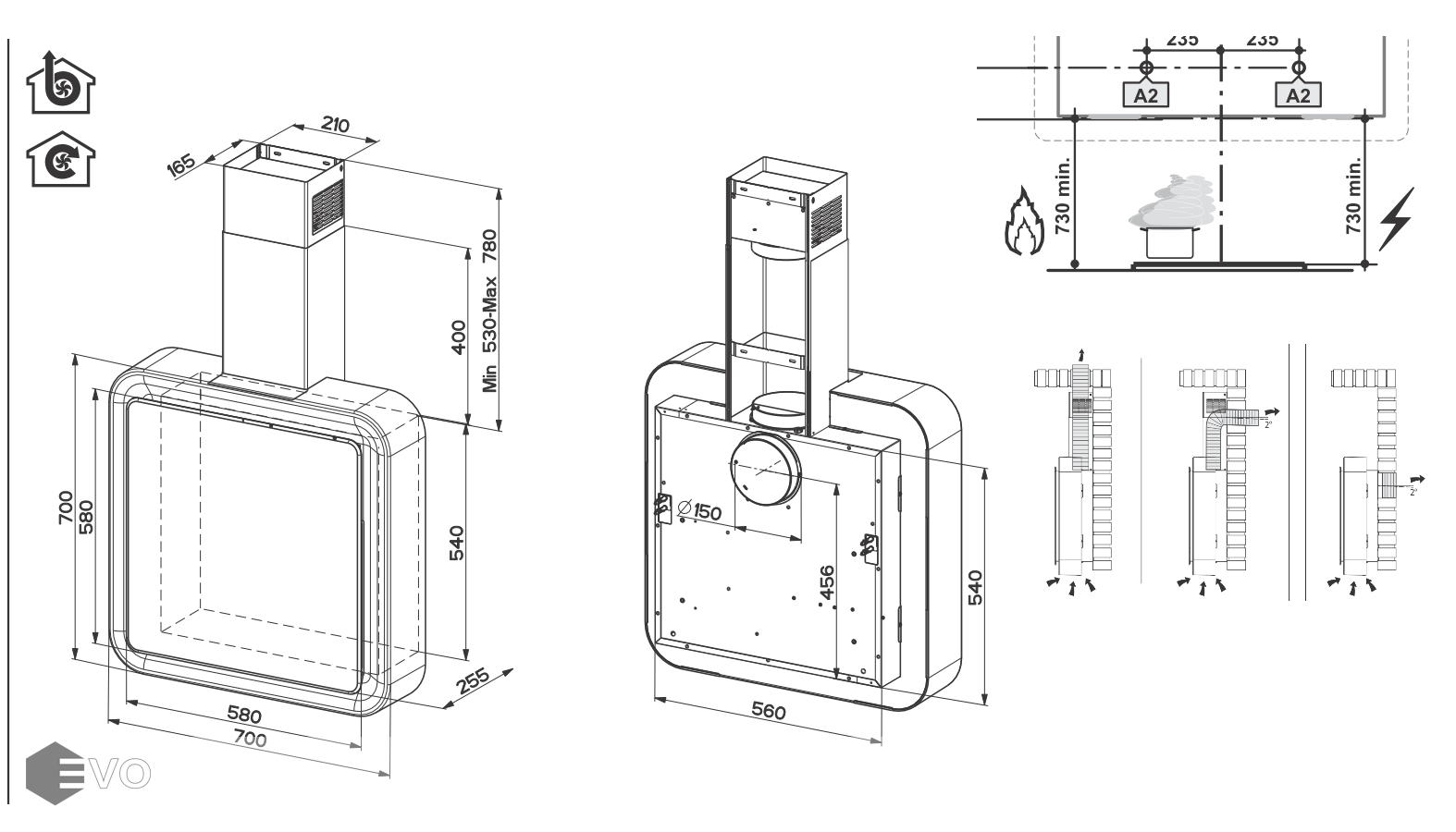 - Высота установки над электрическими варочными поверхностями, мм: 730