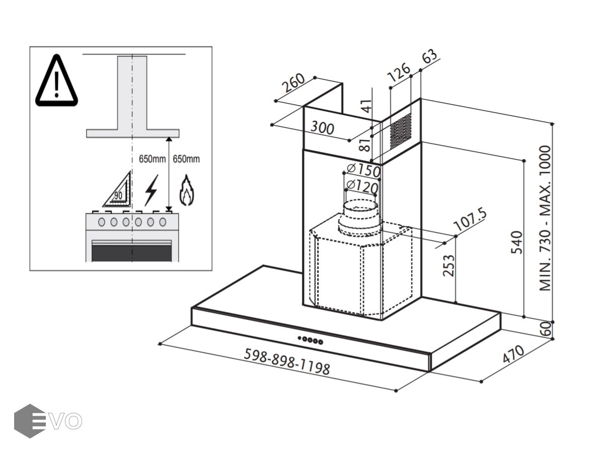 - Высота установки над электрическими варочными поверхностями, мм: 650
