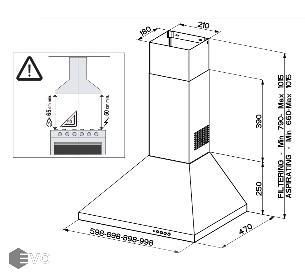 - Высота установки над газовыми варочными поверхностями, мм: 650