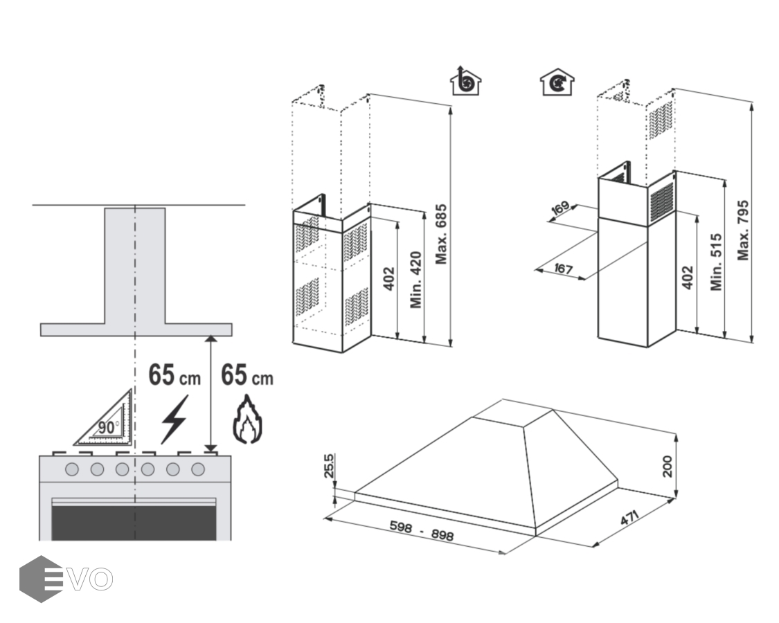 - Высота установки над электрическими варочными поверхностями, мм: 650