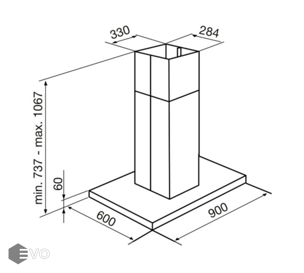 - Габариты (ВхШхГ), мм: 737-1067x900x600