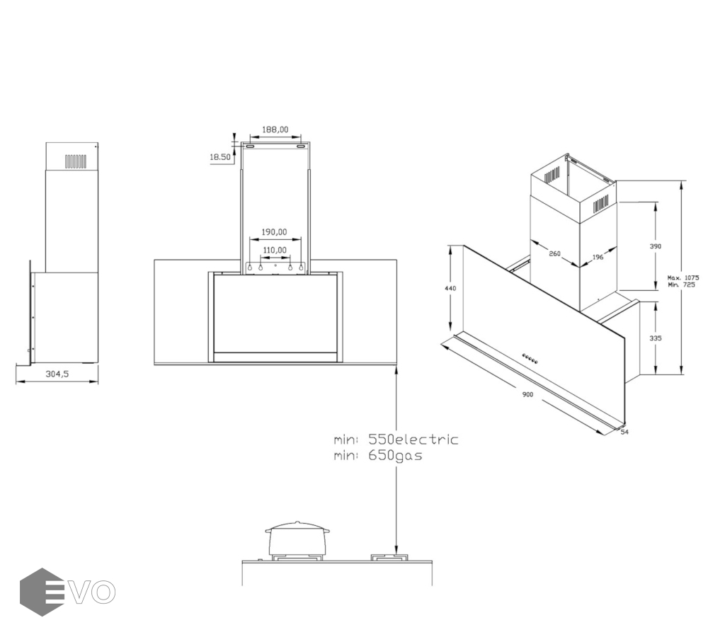 - Высота установки над электрическими варочными поверхностями, мм: 550