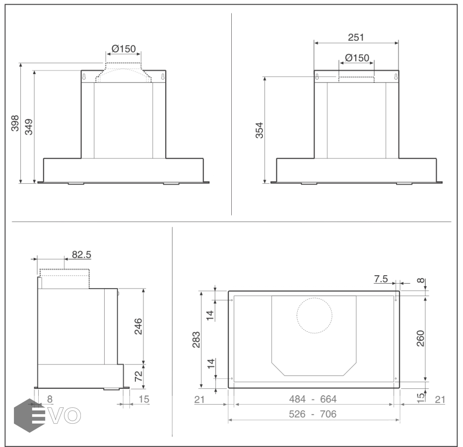 • Высота установки над электрическими варочными поверхностями, мм: 550