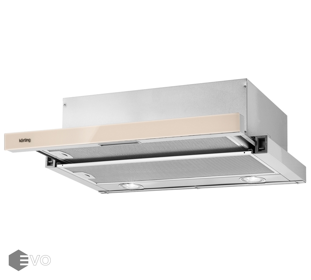 Выдвижная вытяжка Korting KHP 6211 GB – вытяжка выполнена в современном дизайне и прекрасно дополнит собой любую кухню, благодаря выдвижному экрану увеличивается площадь забора воздуха. Слайдерное управление скоростями и включения освещения закрыты выдвижной панелью из стекла, которое обработано фаской.