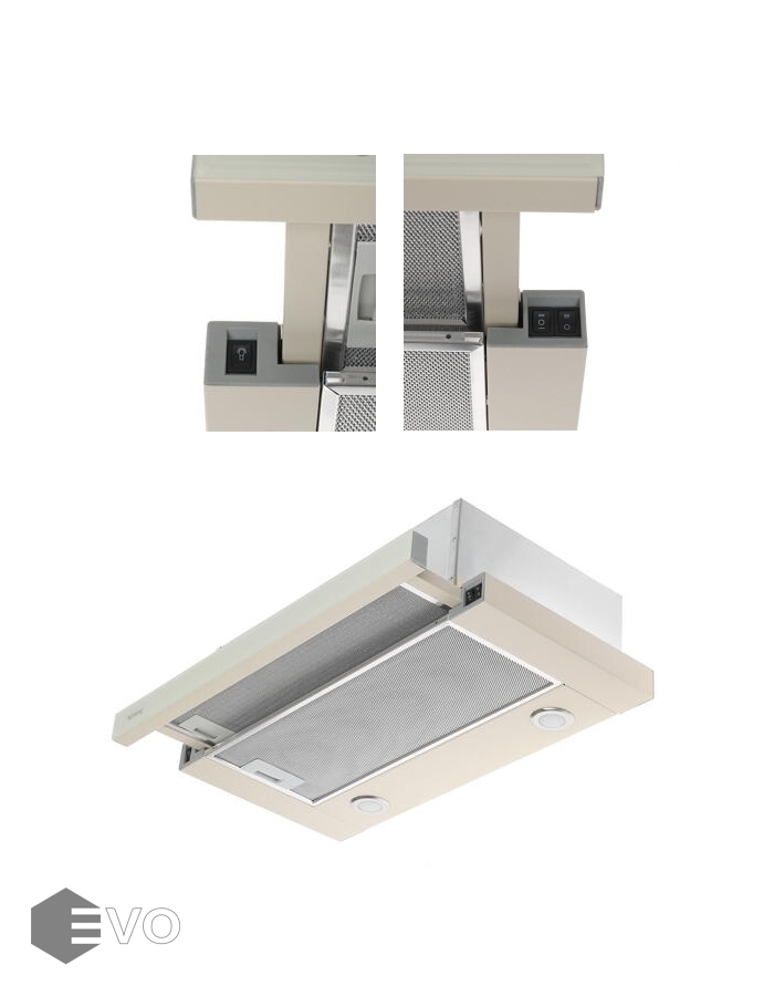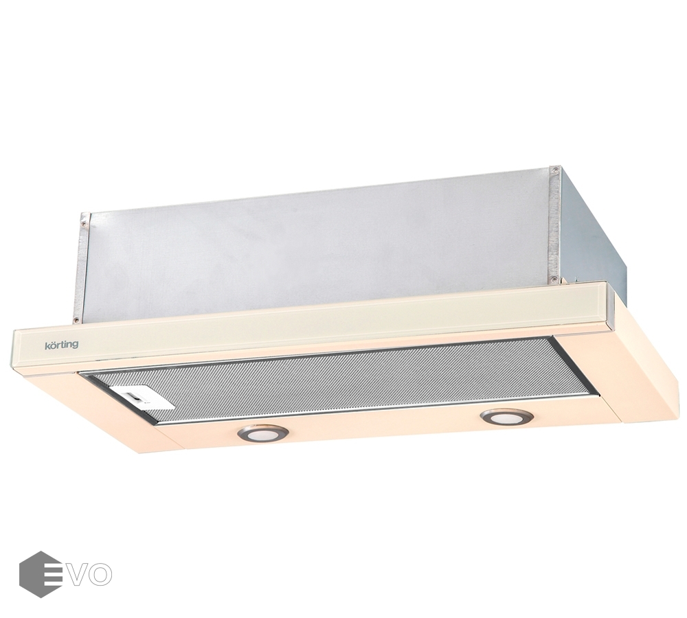 Выдвижная вытяжка Korting KHP 6617 GB – вытяжка выполнена в современном дизайне и прекрасно дополнит собой любую кухню. Клавиши переключения скоростей и включения освещения закрыты выдвижной панелью из стекла, которое обработано фаской.