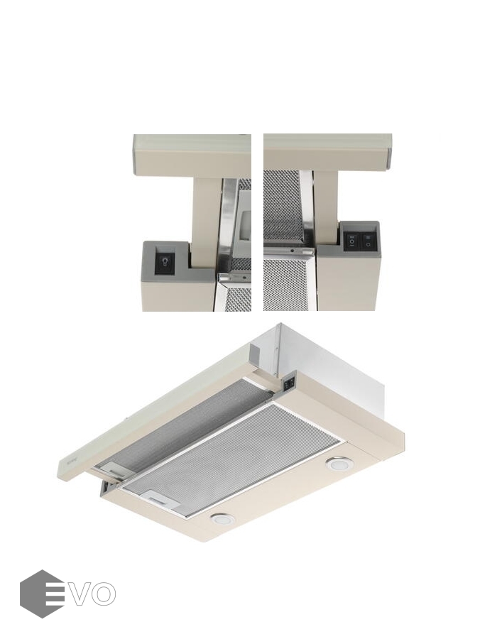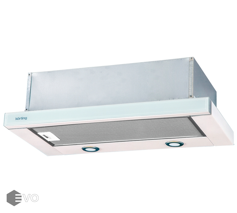 Выдвижная вытяжка Korting KHP 6617 GW – вытяжка выполнена в современном дизайне и прекрасно дополнит собой любую кухню. Клавиши переключения скоростей и включения освещения закрыты выдвижной панелью из стекла, которое обработано фаской.