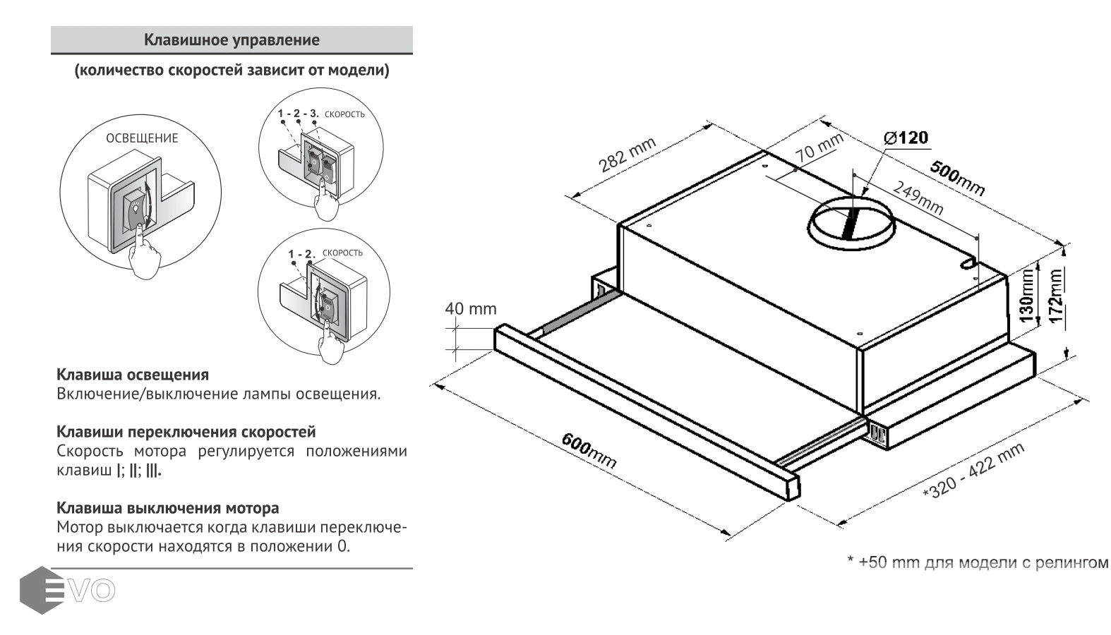Особенности вытяжки: Выдвижная панель Жировой фильтр