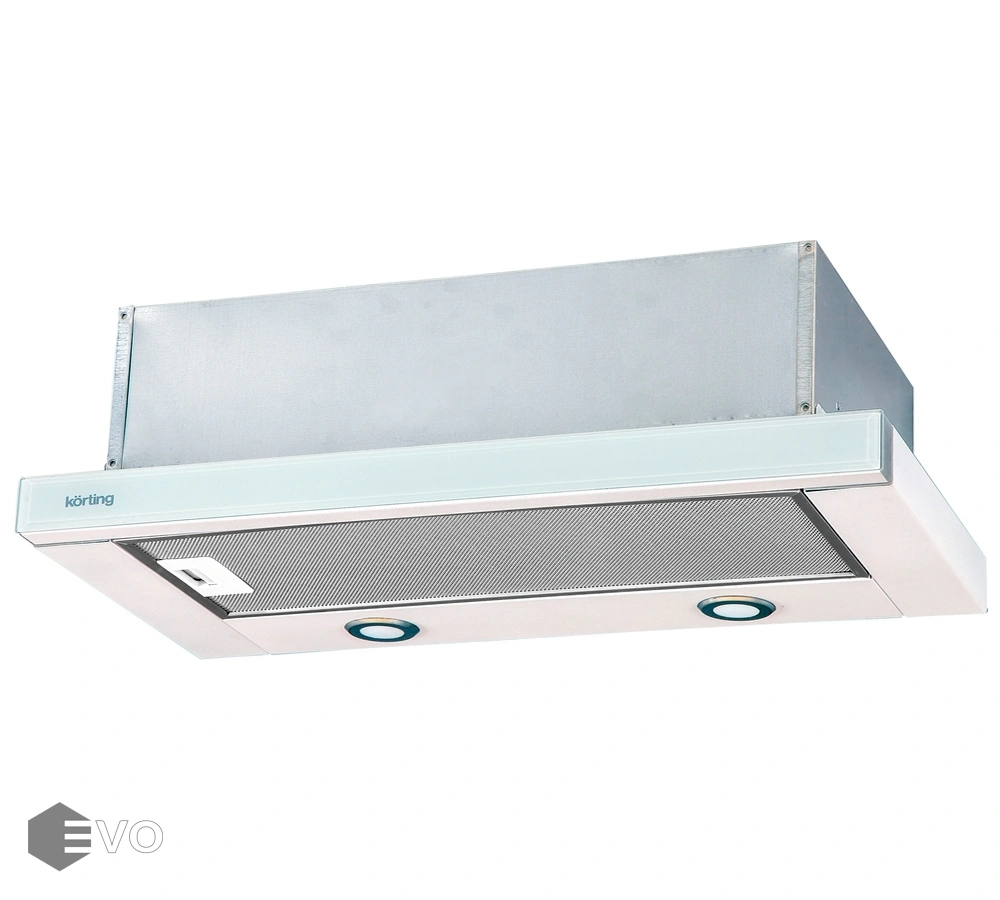 Выдвижная вытяжка Korting KHP 6617 GW – вытяжка выполнена в современном дизайне и прекрасно дополнит собой любую кухню. Клавиши переключения скоростей и включения освещения закрыты выдвижной панелью из стекла, которое обработано фаской.