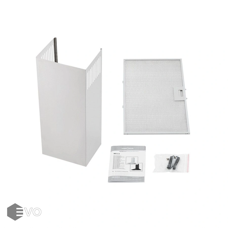 Купольная вытяжка KRONA BELLA 500 white push button – это очень тихая купольная вытяжка с изящным декоративным кантом, кнопочным управлением и инновационным покрытием Antimark которая защищает поверхность от отпечатков пальцев. Подойдет для кухни площадью до 11 кв.м. Вытяжка имеет з скорости вентиляции, в зависимости от того на сколько велики испарения при готовке и жарке можно выбрать наиболее подходящую скорость вентиляции. Переключение режимов – кнопочное управление.