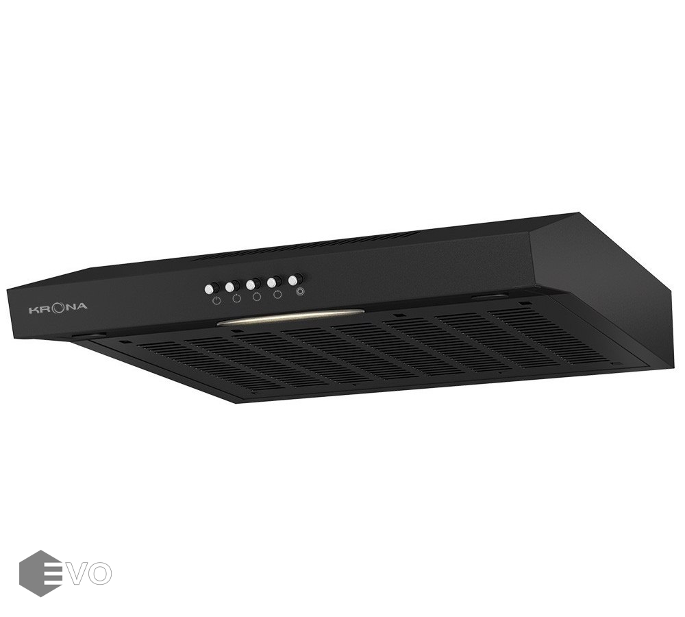 Подвесная вытяжка KRONA ERMINA 500 black PB порадует Вас не только лаконичный дизайном, который идеально подойдет для любого кухонного интерьера, но и достойными характеристиками. Производительность вытяжки рассчитана для кухни до 7 кв.м., а работает она практически бесшумно. Благодаря широкому выбору цветовых и размерных решений, эта модель отлично подойдет для любой кухни. Вытяжка имеет три скорости вентиляции, в зависимости от того на сколько велики испарения при готовке и жарке можно выбрать наиболее подходящую скорость вентиляции. Переключение режимов – кнопочное управление.