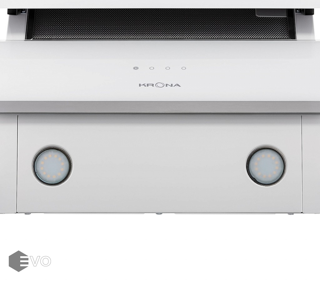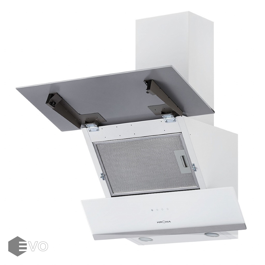 Наклонная вытяжка KRONA IRIDA 600 white sensor - вытяжка с периметральным всасыванием, стильными элементами из нержавеющей стали, мощным мотором, высокой производительностью и энергосберегающим освещением отлично подойдет для большой кухни площадью до 15 кв.м. Переключение режимов – сенсорное управление. Передняя панель вытяжки полностью выполнена из стекла, что делает эту модель идеальным дополнением любой кухни как в классическом стиле, так и в стиле модерн и хай-тек.