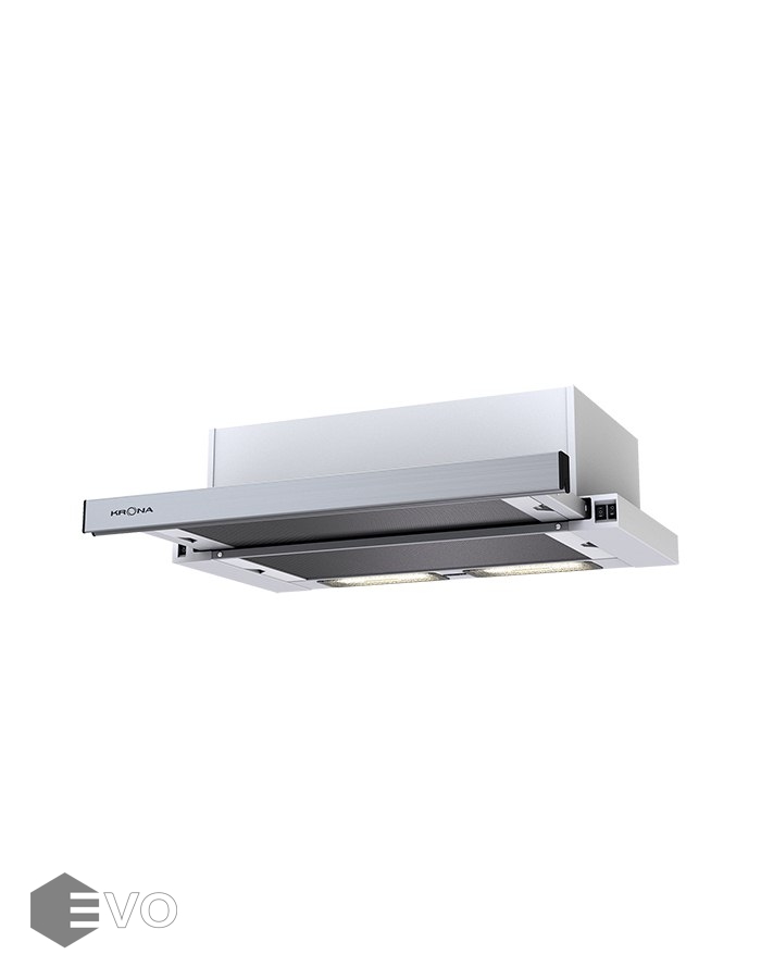 Встраиваемая вытяжка KRONA KAMILLA 600 INOX (1 мотор) идеально подойдет для кухни в классическом и рустикальном стиле. У модели 1 мотор  с производительностью 390 куб.м. Управление с функцией «Slide Stop» - вытяжка запоминает последнюю выбранную скорость. Удобный вырез в планке под руку, европейская бесшовная сборка.
