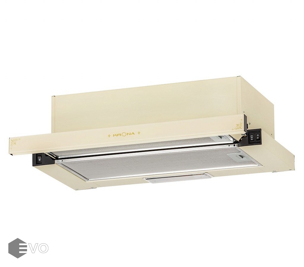 Встраиваемая вытяжка KRONA KAMILLA 600 IVORY RETRO с эксклюзивным рисунком на стеклянной выдвижной панели идеально подойдет для кухни в классическом и рустикальном стиле. У модели 2 мощных мотора и высокая производительность 820 куб.м., энергосберегающее LED-освещение.
