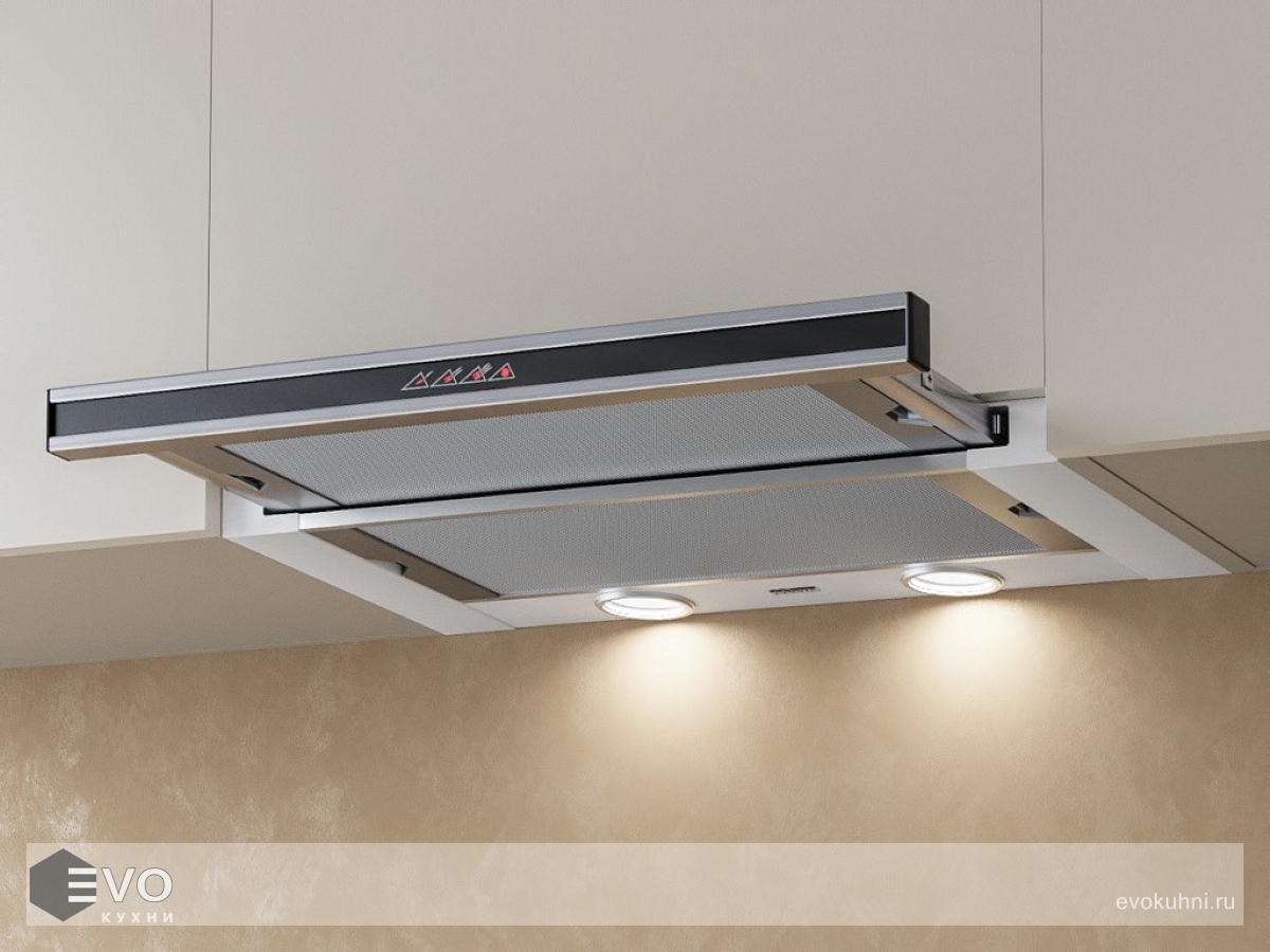 Встраиваемая вытяжка KRONA KAMILLA sensor 600 inox (2 мотора) - вытяжка с двумя мощными моторами и современным сенсорным управлением на выдвижной панели с таймером автоотключения на 15 минут. У модели 2 мотора с производительностью 820 куб.м., управление с функцией «Slide Stop» - вытяжка запоминает последнюю выбранную скорость.