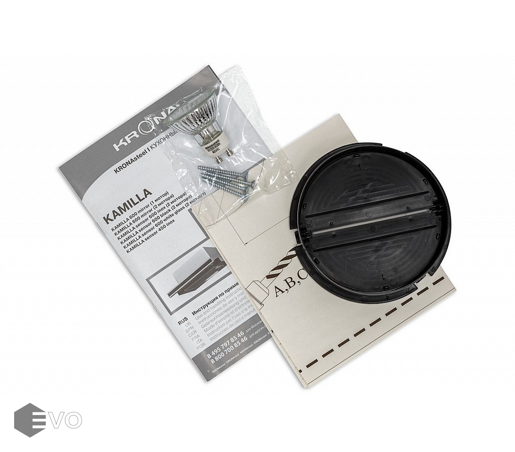 KRONA KAMILLA sensor 600 white glass (2 мотора) - вытяжка с двумя мощными моторами и современным сенсорным управлением на выдвижной панели с таймером автоотключения на 15 минут. У модели 2 мотора с производительностью 820 куб.м., управление с функцией «Slide Stop» - вытяжка запоминает последнюю выбранную скорость.