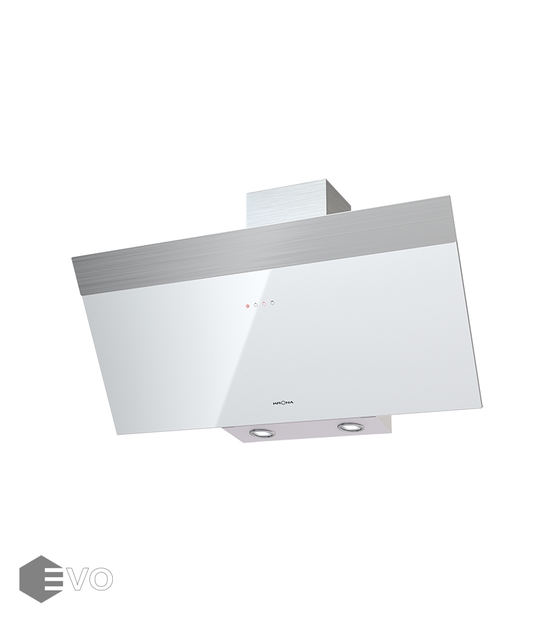 Наклонная вытяжка KRONA Kristen 900 white/inox S - вытяжка с периметральным всасыванием, стильными элементами из нержавеющей стали, мощным мотором, высокой производительностью и энергосберегающим освещением отлично подойдет для большой кухни площадью до 20 кв.м. Переключение режимов – сенсорное управление.