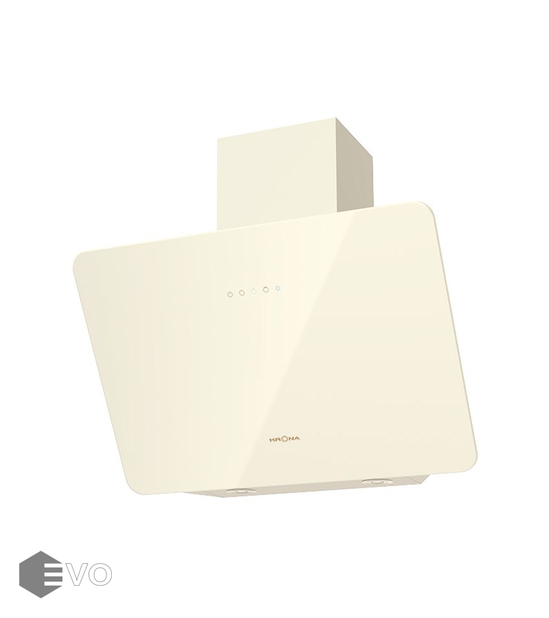 Наклонная вытяжка KRONA LIORA 600 ivory S - вытяжка с периметральным всасыванием, подойдет для кухни площадью до 12 кв.м. Откидная панель вытяжки полностью выполнена из стекла, что делает эту модель идеальным дополнением любой кухни как в классическом стиле, так и в стиле модерн и хай-тек.