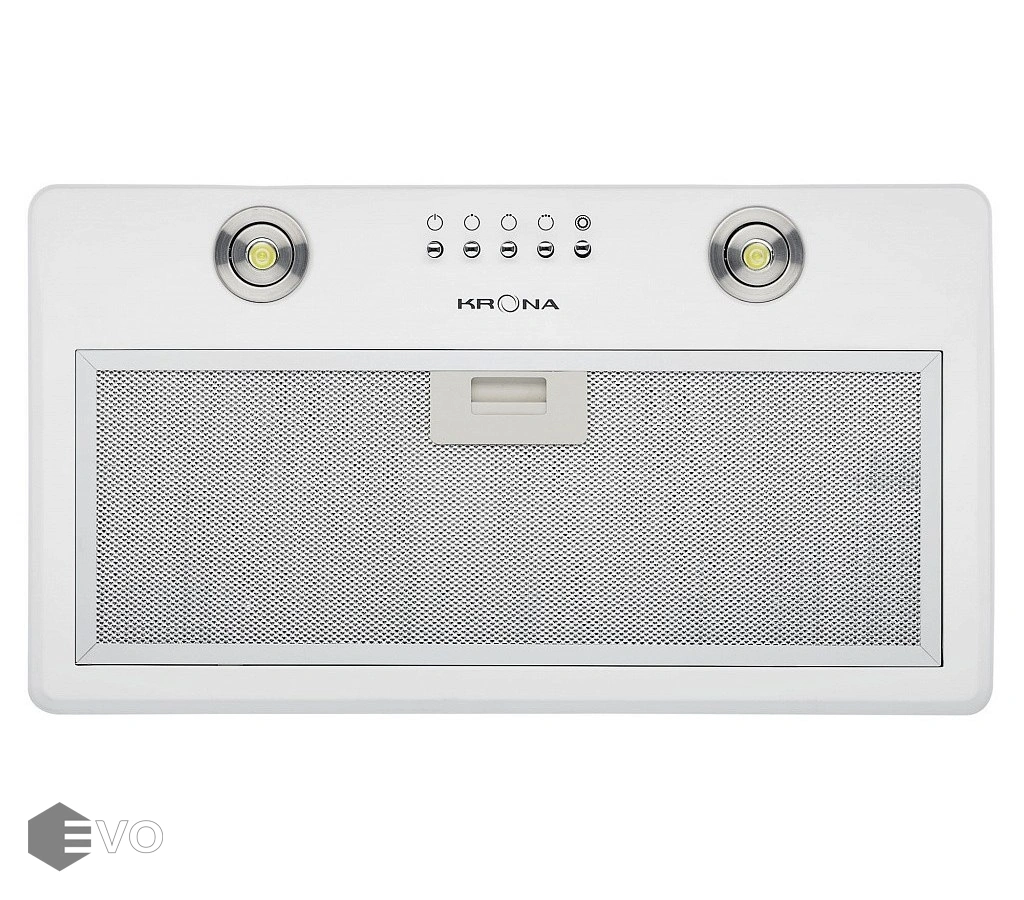 Полновстраиваемая вытяжка KRONA RUNA 600 white PB - вытяжка RUNA PB с удобным управлением отлично подойдет для кухни площадью до 13 кв.м. Преимущества модели-это лаконичный дизайн, высокая производительность, энергосберегающее освещение и возможность встраивания на высоте 50/65 см от варочной поверхности. У модели удобное кнопочное переключение скоростей, угольный акриловый запаха-улавливающий фильтр (в комплект не входит) применяется для фильтрации воздуха в помещении в режиме рециркуляции. Корпус вытяжки встраивается в шкаф или декоративный каминный купол над плитой.