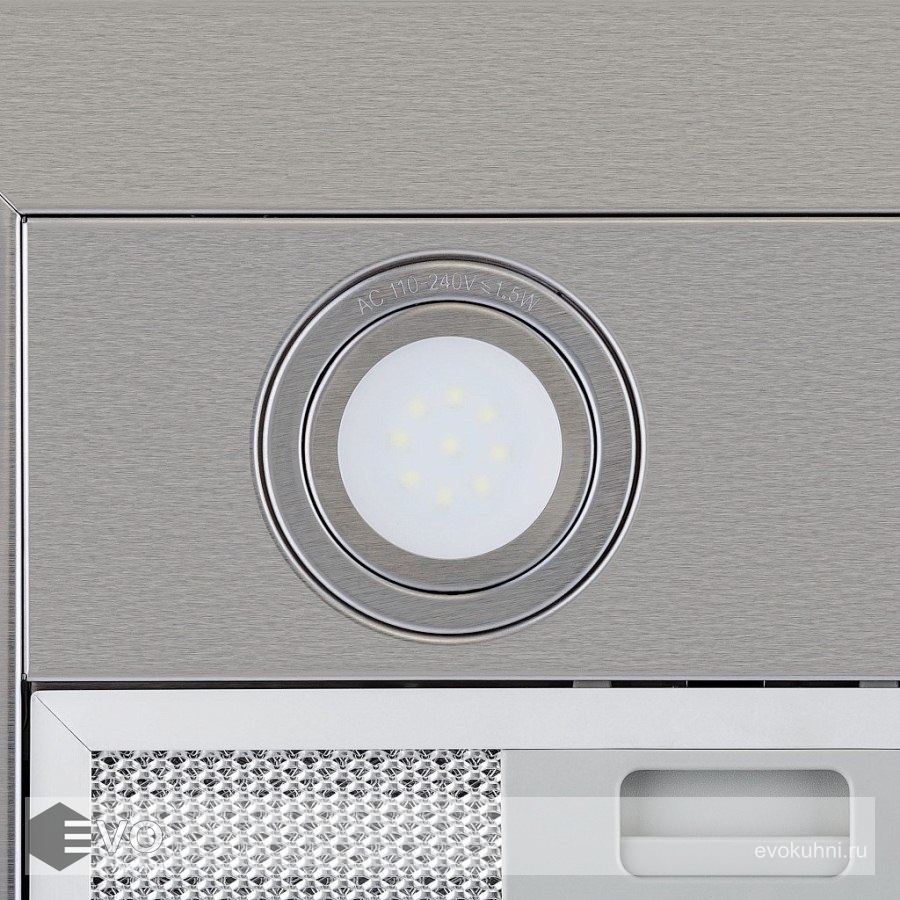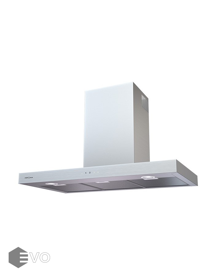 Т-образная вытяжка KRONA RUT 900 inox 3P-S – модель в лаконичном дизайне отлично подойдет для кухни площадью 20 кв.м. У модели яркое и при этом энергосберегающее освещение. Вытяжка имеет з скорости вентиляции, в зависимости от того на сколько велики испарения при готовке и жарке можно выбрать наиболее подходящую скорость вентиляции. Переключение режимов – кнопочное управление.