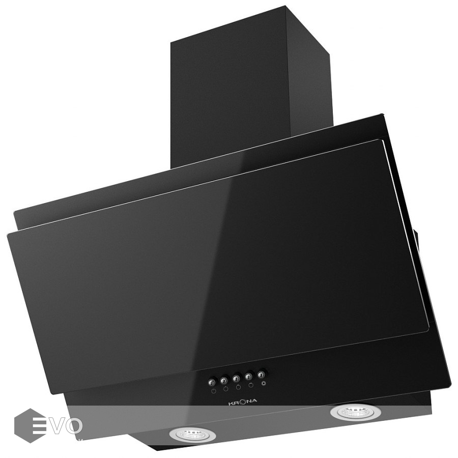 Наклонная вытяжка KRONA VENERA 600 black PB - вытяжка с периметральным всасыванием, подойдет для кухни площадью до 13 кв.м. Откидная панель вытяжки полностью выполнена из стекла, что делает эту модель идеальным дополнением любой кухни как в классическом стиле, так и в стиле модерн и хай-тек.