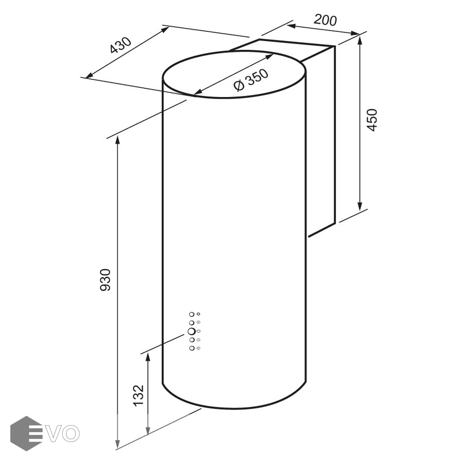 Тип вытяжки: Дизайнерская, цилиндрическая