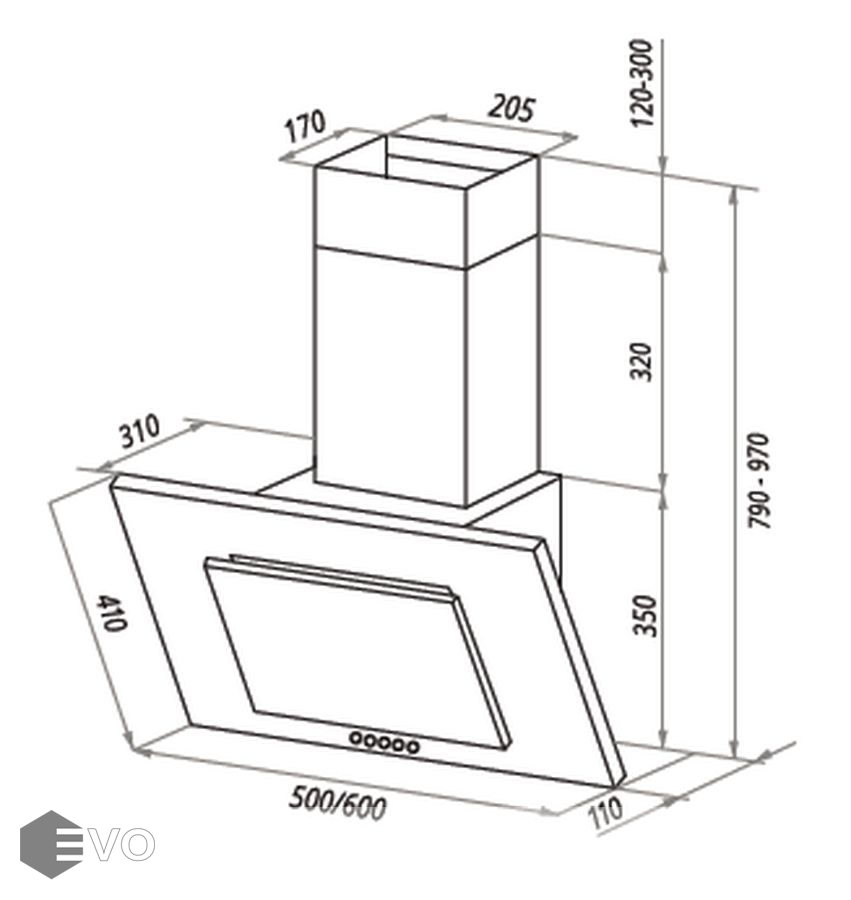 Мощность мотора и максимальная производительностьПолная потребляемая мощность мотора 102 Вт, максимальная производительность 650 м3/ч. Данная вытяжка может работать на кухне площадью до 25 м2. Уровень шума 47 Дб.