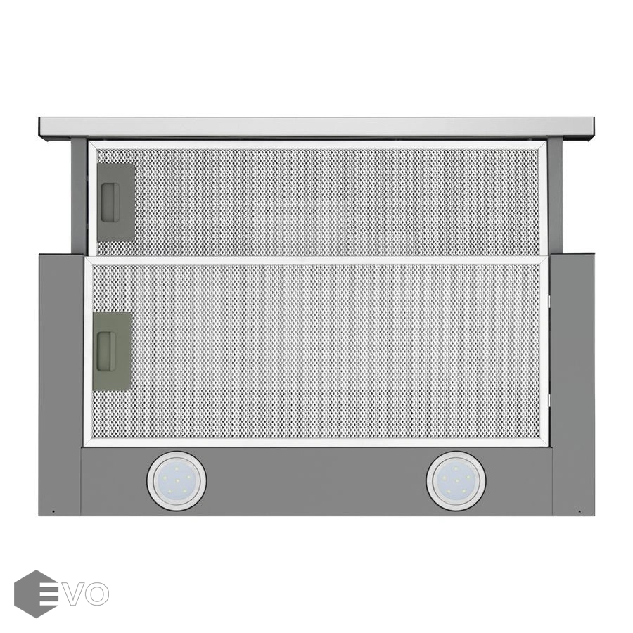 Особенности Телескопическая жировая решетка. Для работы вытяжки необходимо выдвинуть жировую решетку, данная конструктивная особенность создает широкую рабочую поверхность, что позволяет эффективно производить забор воздуха от плиты.